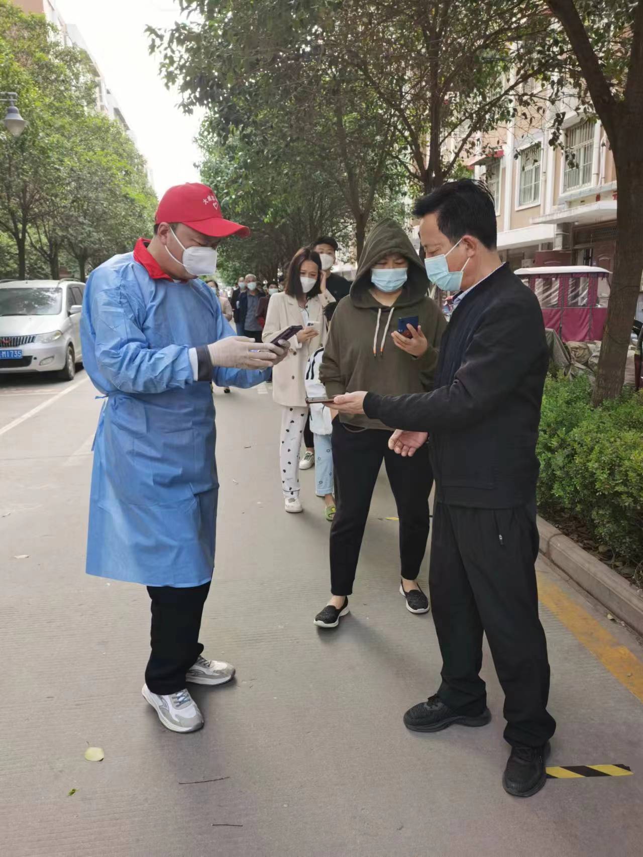 5月6日,社區(qū)人員及醫(yī)護(hù)人員到向陽花園對60多名重點(diǎn)人員進(jìn)行上門逐一進(jìn)行核酸檢測,物業(yè)分公司員工張全民和兩個門衛(wèi)人員配合醫(yī)護(hù)人員從當(dāng)天夜間11點(diǎn)多到第二天凌晨3點(diǎn)多才全部采集完畢。