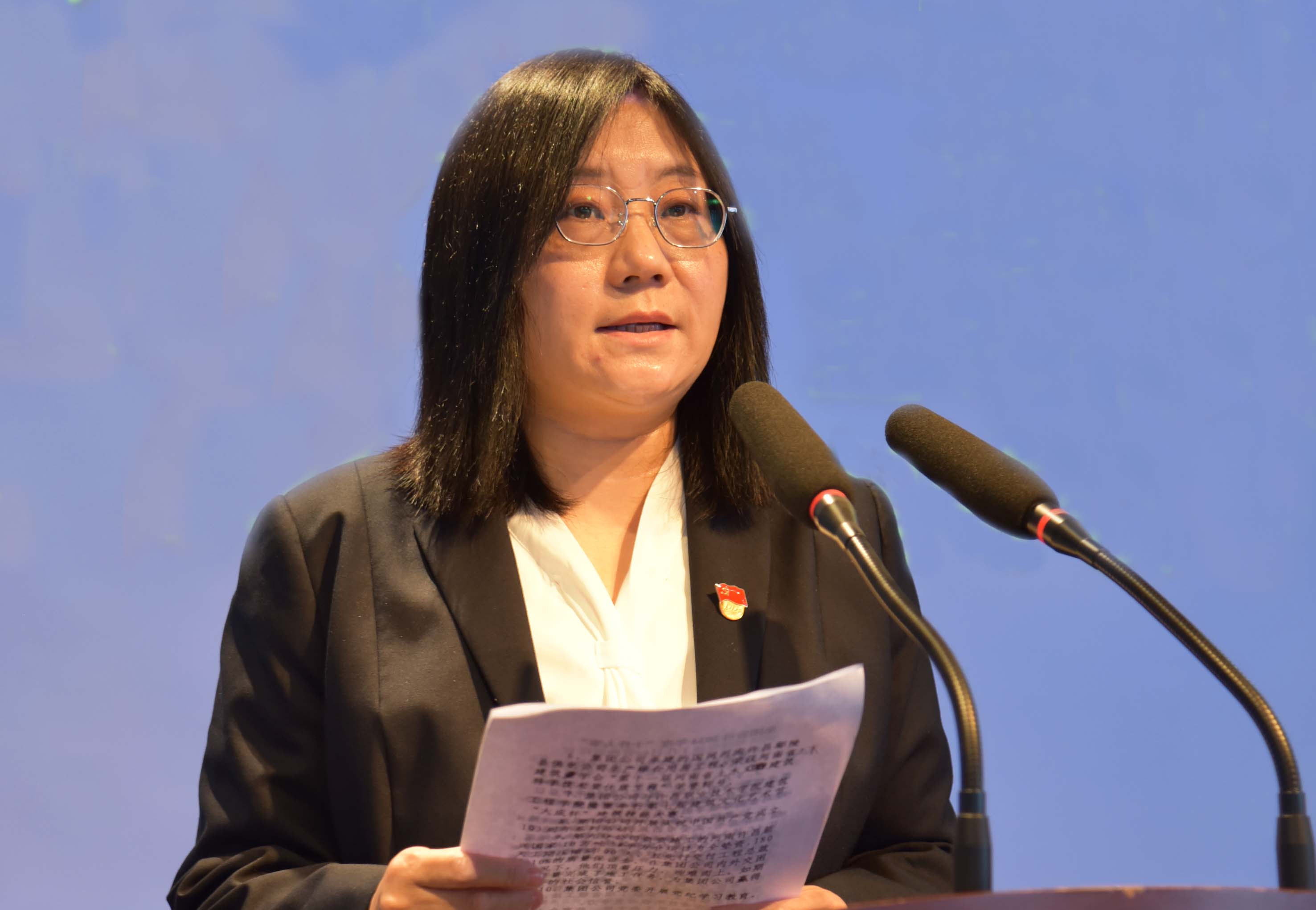 新當(dāng)選黨委書記周俊峰、新任紀(jì)委書記張志娜(左、右)作表態(tài)發(fā)言  ▲