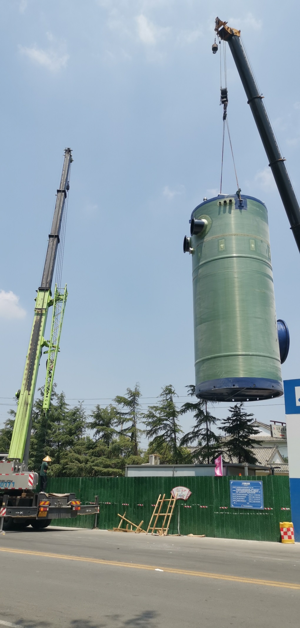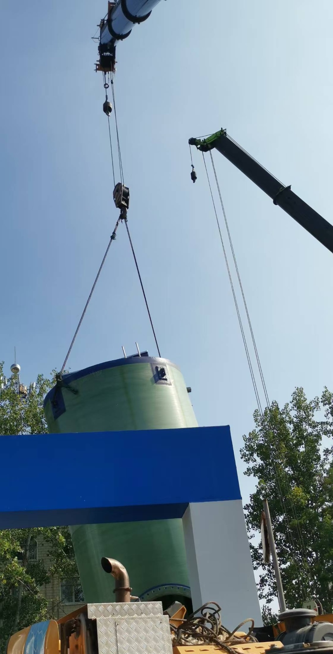 此次吊裝的一體化泵站規(guī)格顯著,直徑達 4.2 米,高 10 米,自重 15 噸。作為城市排水提升工程的核心設施,其性能優(yōu)勢突出。該泵站配備先進的自動化控制系統(tǒng),能依據(jù)集水池水位變化自動調(diào)控水泵啟停,實現(xiàn)無人值守運行。同時,可實時監(jiān)測水位、流量、設備故障等運行狀態(tài)信息,并將數(shù)據(jù)同步至遠程監(jiān)控中心,便于管理人員遠程操作與維護,大幅提升了運維效率。