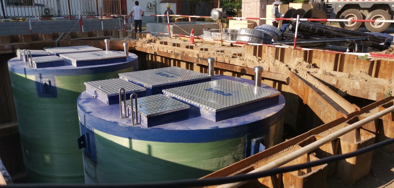 從工程整體規(guī)劃來看,該項目服務范圍明確,涵蓋文興路以東、許由路以南、金葉大道以北、清潩河以西區(qū)域的雨水排放,規(guī)劃匯水面積約 181.74 公頃,泵站總設計流量約 9.09m³/s。在排水系統(tǒng)布局上,采取 “新舊結合” 的思路,充分利用現(xiàn)狀泵站(規(guī)模 4m³/s,配備 4 臺潛水軸流泵,單泵流量 1m³/s、揚程 5.5m、功率 90kW),同時新建一體化雨水泵站(規(guī)模 5.12m³/s)。新建泵站采用 2 座 Φ4.2m×10m 玻璃鋼筒體,設置 4 臺軸流泵(單泵流量 1.28m³/s、揚程 9.8m、功率 185kW),配套設施完善,包括前池 2 套回轉(zhuǎn)格柵、潛污泵排水系統(tǒng)、DN800 強排管道及拍門、1250kVA 箱變等。