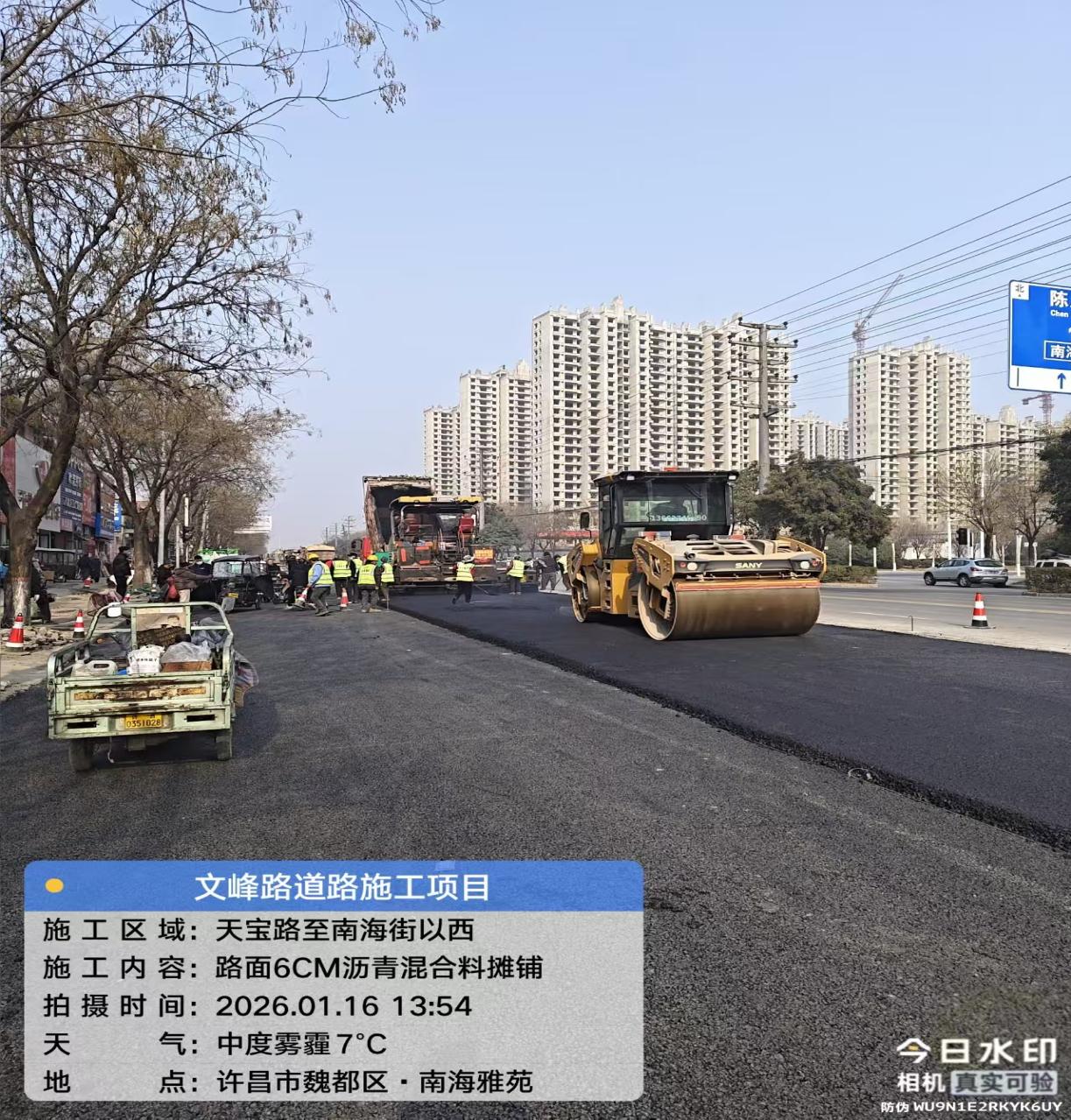 為提升道路通行品質(zhì),保障居民通行安全。1月15日起,由集團公司承建的許昌市文峰路(天寶路—永昌路)段地下管網(wǎng)及道路提升改造工程,天寶路-南海街段組織施工力量,對全長670米、寬11米的路段展開瀝青碎石和6CM厚AC-20C中粒式瀝青混合料集中攤鋪作業(yè)。