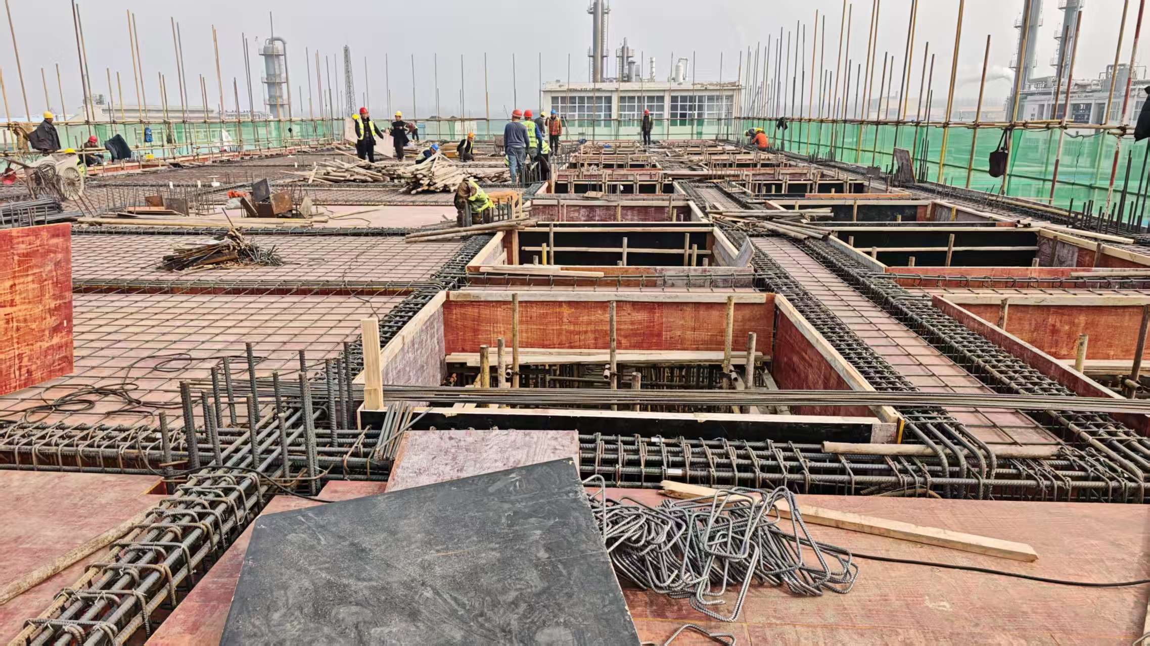 結(jié)晶精餾主體施工穩(wěn)步推進,二層鋼筋綁扎完成50%。作業(yè)人員嚴把鋼筋下料、綁扎、間距控制等關(guān)鍵工序,嚴格執(zhí)行技術(shù)交底與質(zhì)量復(fù)核制度,確保鋼筋綁扎的牢固度與精準度,目前現(xiàn)場施工秩序井然,為后續(xù)模板支護、混凝土澆筑工作順利開展創(chuàng)造了有利條件。